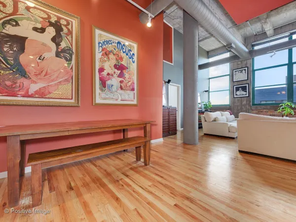 Experience the pulse of being in the heart of the West Loop, the very best central block in the midst of all of action in the most convenient and strategic location steps to the highest concentration of find and casual dining in the City of Chicago. Accompanied by retail, cafes, nightlife, day life for sports event watching, brunch, lunch time on Saturdays, dog parks strollers, three City of Chicago Parks in walking distance. Walk to your office in the West Loop, Loop, EL stop at Lake and Morgan, Metra, Loop Offices, easy access to all of the expressways. A completely Integrated neighborhood with some of the top public and private schools in the city and state of Illinois. Residence 6F located in a boutique loft building of 48 years with a brand new, contemporary and inviting lobby, Butterfly system access. Residence 6F features a completely one of a kind flor plan in an old tire factory in its former life built in 1912 including vaulted flat concrete cathedral ceilings on a near 22' foot pitch. Elevated or mezzanine second bedroom split apart from sumptuous primary suite with walk-in closet, built ins, highly upgraded and masterfully executed dual vanity, stone countertop, large showiness with steam, bench, dressed in stone, frameless showed glass. fully enclosed bedroom. central kitchen in a 42' by 17' main living space, all wood cabinetry easily can be sprayed any color, stainless steel appliance, 1.25" straight edge granite. Laundry room. Vast living room, real "tongue and groove" oak hardwood floors which can be sanded multiple times. Sun-drenched west exposure. Two parking spaces, P2-16 and P2-60 are not included in the list price. Parking spaces are an additional $25k for each. Approximately 2200 square feet. A must see at $363 per square foot including two onsite parking spaces. 48-unit building offers common sundeck with barbecues, furniture and city views.