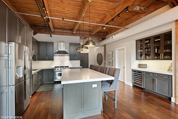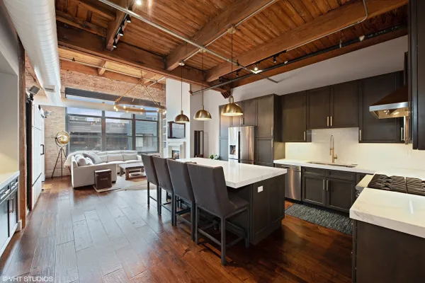 ABSOLUTELY AMAZING, FULLY REAHBBED, 2 BED/2 BATH PH LEVL LOFT W/ PVT ROOF DECK IN ONE OF THE WEST LOOPS MOST SOUGHT AFTER BUILDINGS! PERFECTLY DESIGNED SPACE FEATURES CUSTOM ESPRESSO KITCHEN WITH 36" VIKING RANGE/ SS FRIDGE/BOSCH DW, LRG ISLAND DOUBLE SIDED ISLND W/ CALACATTA VERONA TOPS, CSTM BACK SPLASH AND WATER MARK FIXTURES. OVRSZE OPEN LIVING SPACE IS FLOODED WITH LIGHT AND BOASTS 16 FT CEILINGS, CSTM LIGHTING, WD BURING FP WITH CSTM STONE MNTLE, 8" WIDE PLANK FLRS, BAR WITH WINE STORAGE AND HUNTER DOUGLAS MOTORIZED SHADES. 2 THOUGHTFULLY DESIGNED BEDROOMS INCL A BEAUTIFUL MSTR STE W/ORGANIZED CLOSET, LRG BATH W/DOUBLE VANITY/MARBLE/QUARTZ GLASS ENCLOSED SHOWER WATERMARK FIXTURES AND GORGEOUS RH CHANDEILIER. UPDATED MECH, W/D, LRG STORAGE ROOM AND 1 OUTDOOR PKNG SPOT MAKE THIS A MUST SEE. ABSOLUTE HEART OF THE WEST LOOP, STEPS TO DINING, SHOPING, RANDOLPH STREET, SOHO, MCDONALDS HQ. URBAN LIVING AT ITS FINEST.