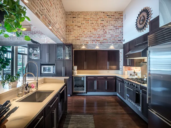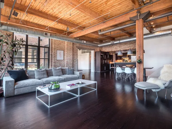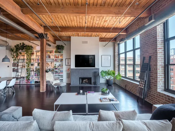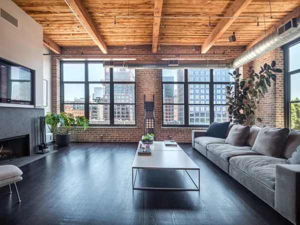 Loft living at its finest, with extraordinary light and scale in one of the last original converted warehouse spaces remaining in the West Loop. This exclusive 3 BR, 21/2 bath home has all the elements of a classic loft with exposed brick, original wood beam ceilings, and hardwood floors expanding over 3,750-sq-ft. The living space is designed for modern comfort in an industrial loft setting. A chef's kitchen awaits with quartz countertops, luxury appliances, a temperature-controlled 200+ bottle wine closet, and separate wine fridge. The open-plan living/dining room features Porro bookcases from Luminaire, a wood-burning fireplace, and oversized windows that open to a 250-sq-ft private terrace. Tranquil sleeping quarters include the master suite, bringing brilliant light with 18ft ceilings, en suite bathroom, and custom walk-in closet. This ultra-quiet corner unit home is the largest in the building, a rare and historic gem of Chicago. 3 parking spaces included.